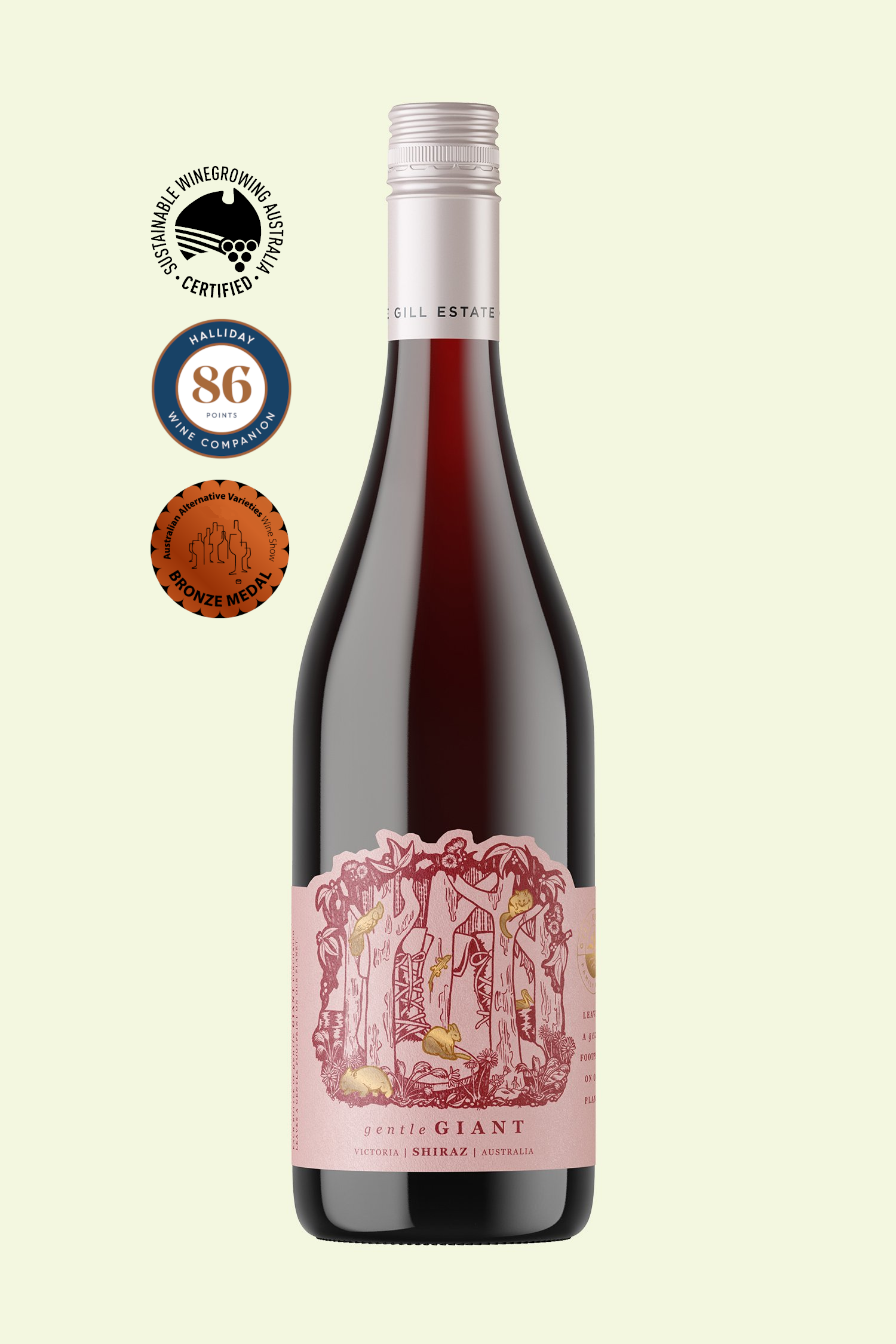 The gentle GIANT Shiraz is ruby red in colour with vibrant purple hues.The aroma starts with juicy blackberry, plum and hints of spice. This wine has generous luscious mouth feel, fresh red berry fruit and sweet fruit favours, with soft tannins,velvet rounded finish, which lingers across the palate.